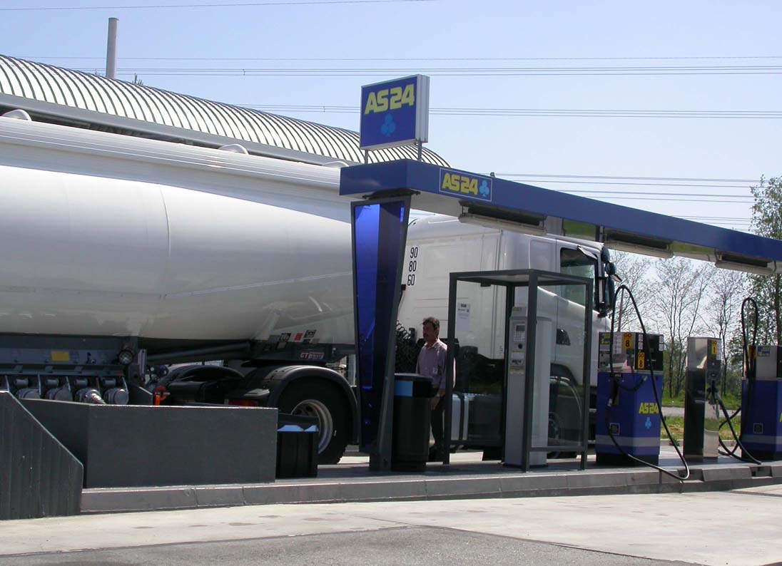 Leader européen de la distribution de carburant, AS 24 assure le ravitaillement dans sa station spécialement conçue pour le confort des professionnels de la route (pistes larges, pistolets gros débits jusqu’à 150l/mn de deux réservoirs).