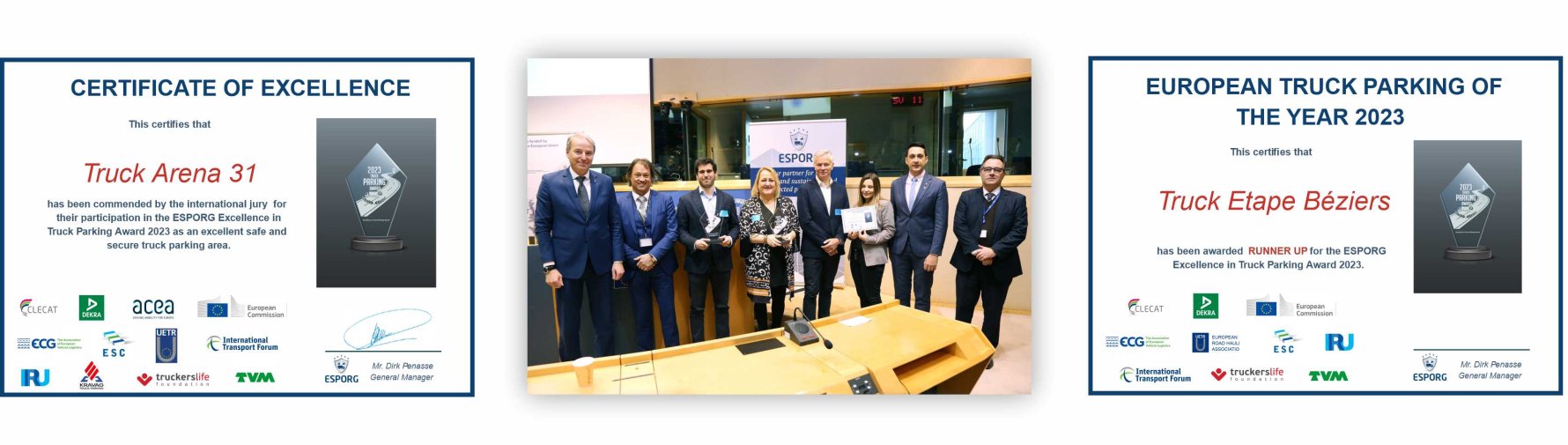 Également en 2023, le parking gardienné sécurisé, TRUCK ARENA 31 TOULOUSE, 130 places PL situé sur la zone Eurocentre, s’est vu attribué par la COMMISSION EUROPEENNE DES TRANSPORTS : "CERTIFICATE OF EXCELLENCE 2023"